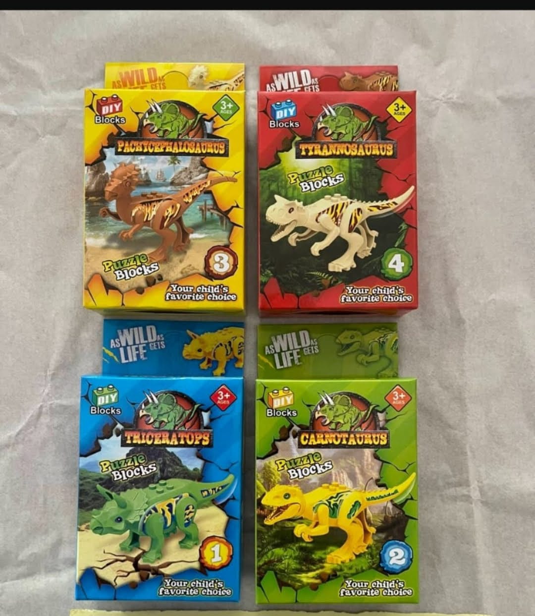 Surtido de juguetes varios (vehículos, figuras de dinosaurios, etc.).